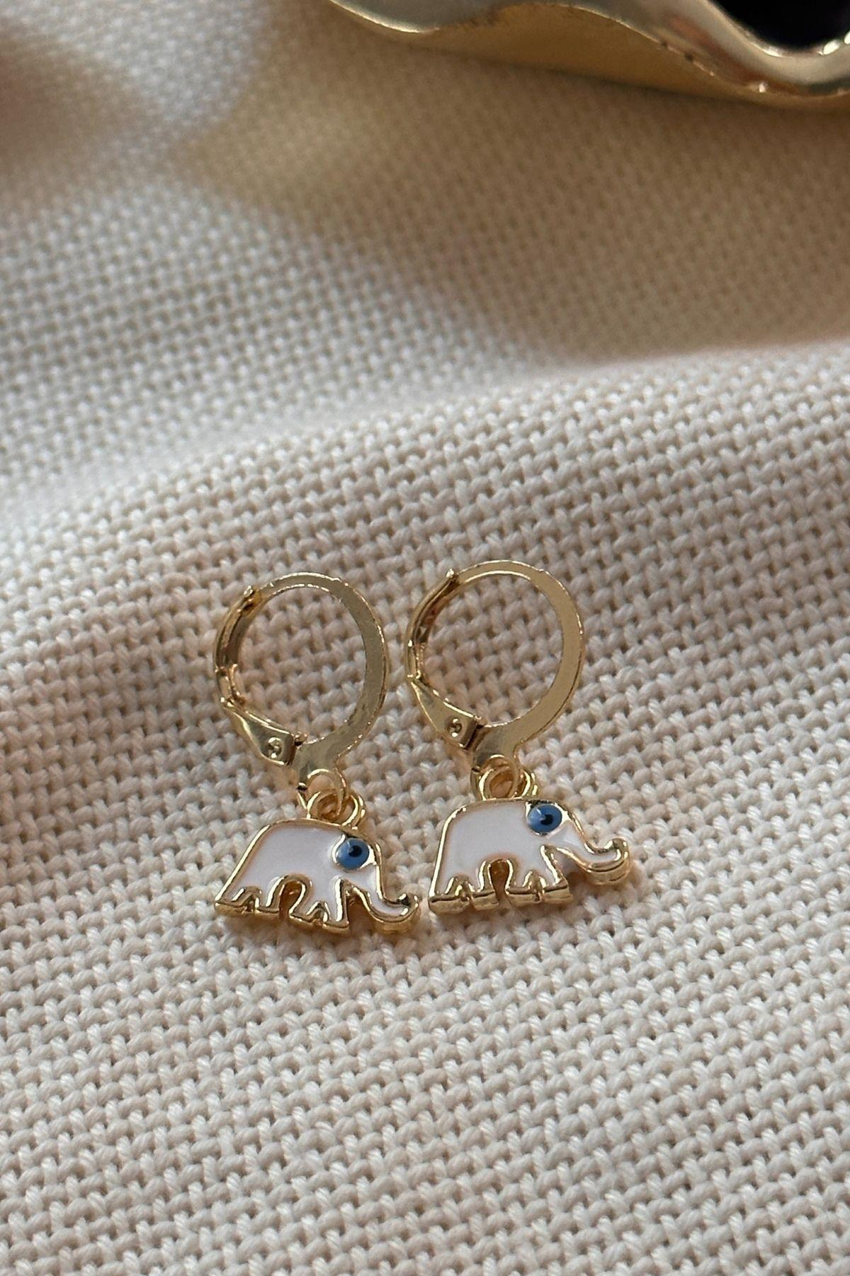 Beyaz Mineli Fil Figürlü Küpe (TB23-0319)
