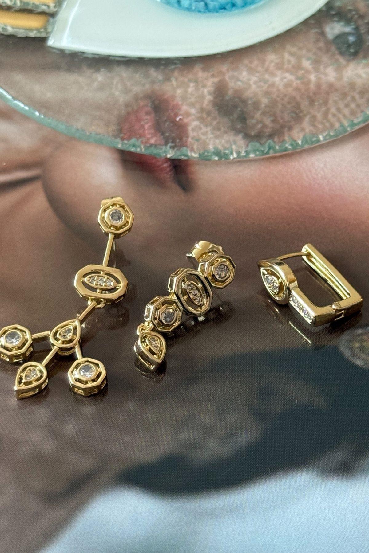 Çelik Damla Taş Model Zirkon Set Küpe (TB25-0513)