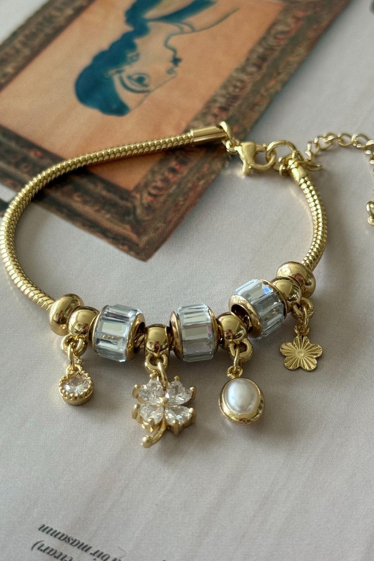 Çelik Yılan Zincirli Yonca Bileklik (TB25-0534)