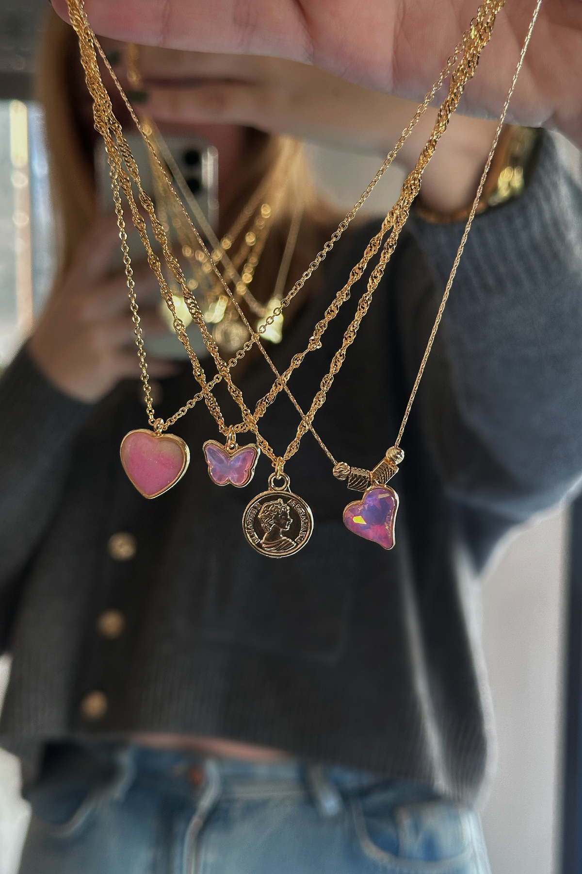 Dörtlü Gold Kalp Kelebek Kolye Set (TB24-1477)