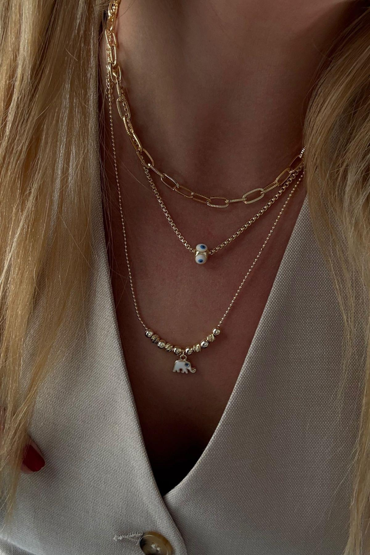 Fil, Nazar ve Zincir Detaylı Üçlü Kolye Kombini (TB25-0218)