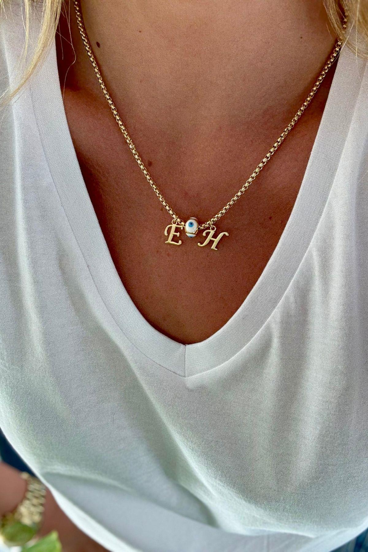 İki Harfli Beyaz Nazar Mineli Kolye (harf Belirtiniz) (TB25-0195)
