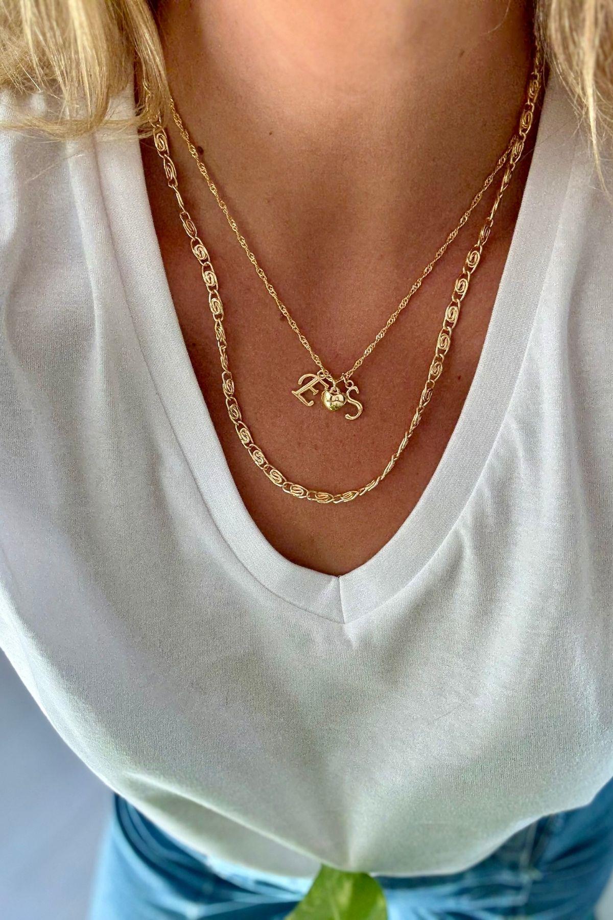 İki Harfli Kalpli İkili Kolye Kombini (Harf Belirtiniz) (TB25-0198)
