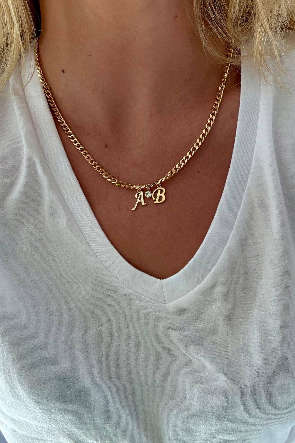 İki Harfli Nostalji Zincirli Zirkon Taşlı Kolye (Harf Belirtiniz) (TB25-0191)