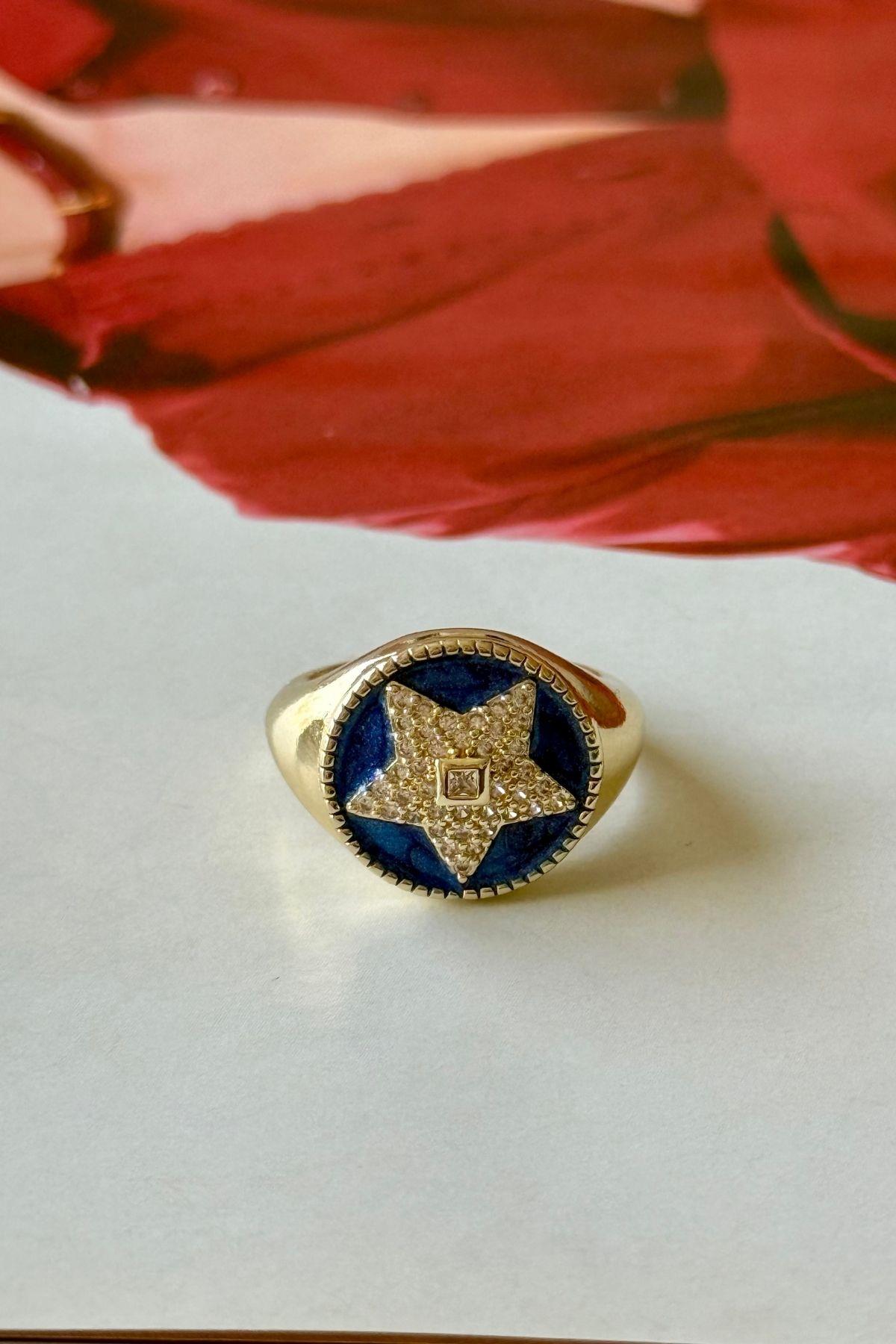 Lacivert Mineli Yıldız Model Serçe Parmak Yüzük (TB25-0806)