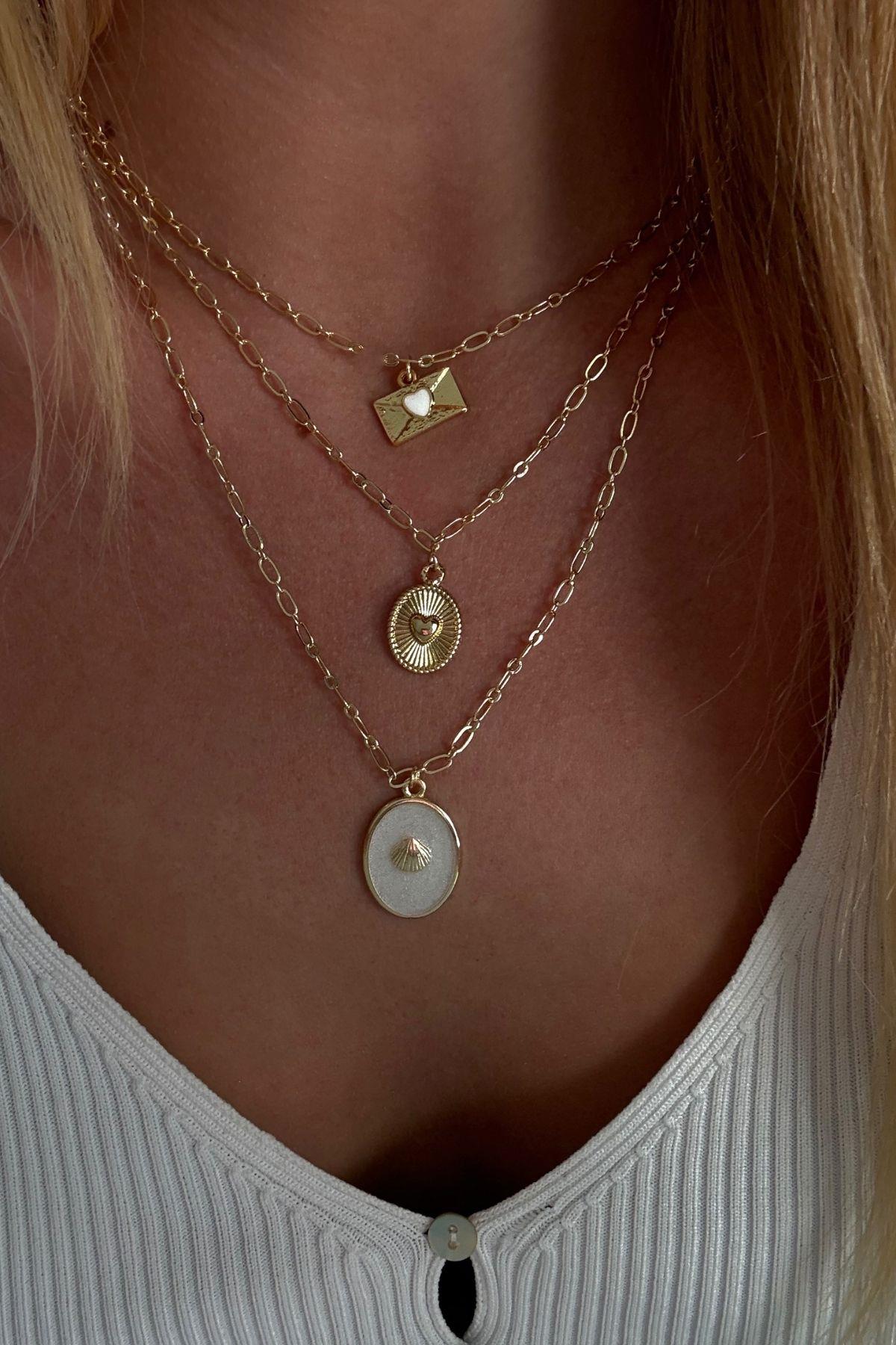 Mektup, Kalp ve İstiridye Figürlü Üçlü Kolye Kombini (TB25-0204)