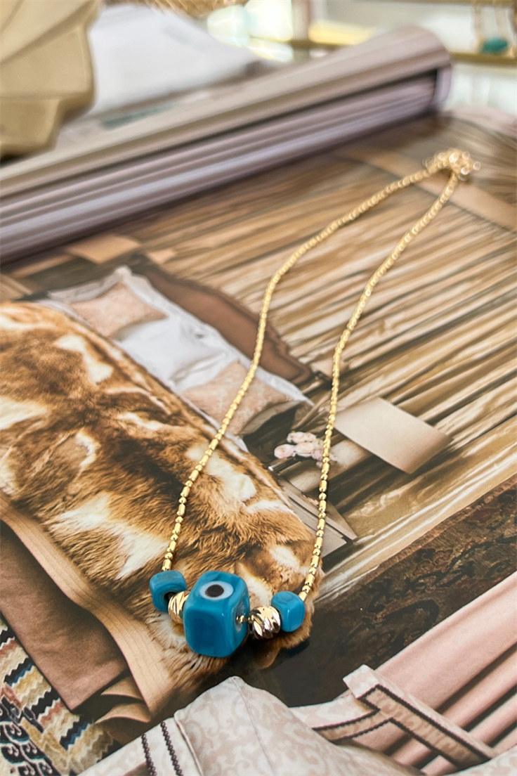 Murano Cam Nostalji Nazar Boncuklu Dorika Detaylı Kolye (TB23-0721)