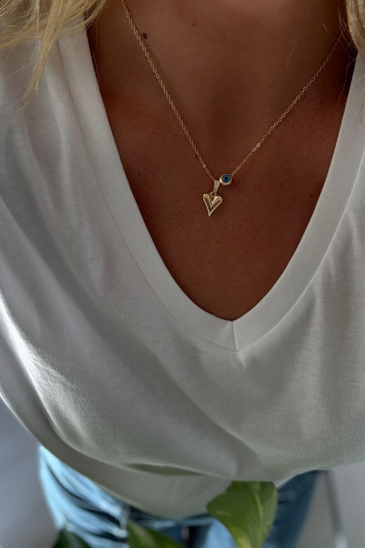Zarif Zincir Kalp ve Nazar Model Kolye (TB25-0199)